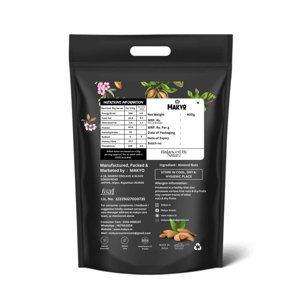 Premium Almonds (Badam) 400g | Crunchy, Fresh & Natural